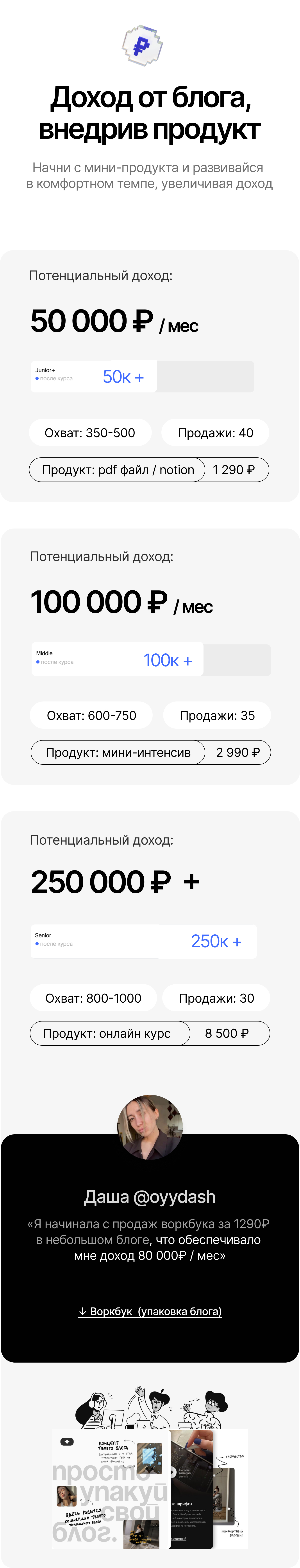 Мне так хотелось к Даше, обожаю её блог (год подписана), что я решила не отказывать себе в таком удовольствии и пойти поучиться. Подход и то, что ты с нами со всеми на связи это космос!! Спасибо за этот невероятный продукт, он очень помог мне